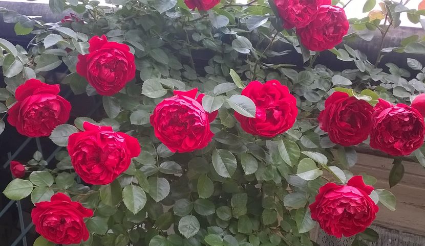 Bred by Tim Hermann Kordes (Germany, 2002). Introduced in Germany by W. Kordes' Söhne (Retail) in 2011 as 'Florentina'. Climber. Red, yellow stamens. Average diameter 3.5". Large, full (26-40 petals), cupped-to-flat bloom form. Blooms in flushes throughout the season. Bushy, climbing, upright. Height of up to 6' 7" (up to 200 cm). Width of up to 39" (up to 100 cm). Hardy.