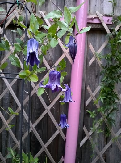 Bred by Kazushige Ozawa (Japan, 1990). Group 3, Herbaceous Group, Late, Small-flowered. Purple. 4 petals. Average diameter 2". Small, single, bell-shaped, curved edge bloom form. Early summer to early autumn. Height of 6' 7" to 8' 2" (200 to 250 cm). USDA zone 5b through 8b. Plant in sun or partial shade. In early spring, cut back to just above the lowest set of healthy buds. Diploid C. integrifolia × C. reticulata Walt.